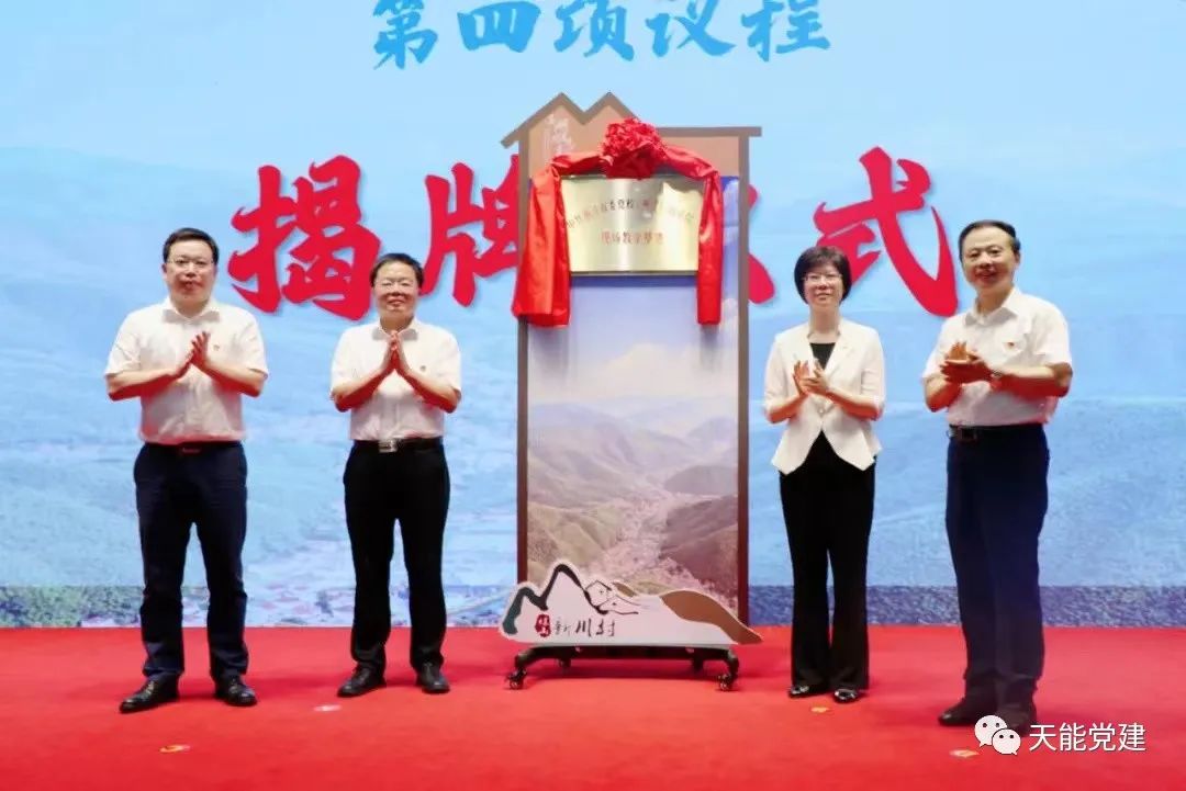 伴随着一阵热烈的掌声,省委党校副校长陈立旭,县委书记石一婷,县委常委、组织部部长、党校校长晏宁波,新川村党委书记、村民委员会主任、jiuyou.com控股集团党委书记、董事长张天任一同将红色的幕布缓缓揭下,新川村正式成为省委党校现场教学基地。